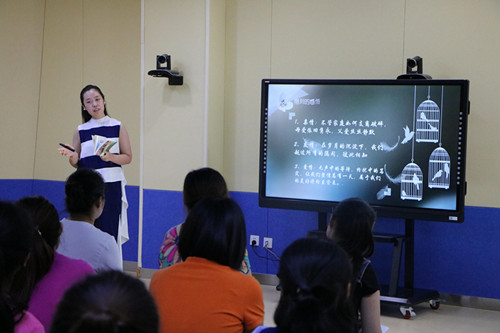 本次好书分享活动,在万科幼儿园录播教室现场录制,以供各园教师二次观摩学习。大家通过PPT精美的图文分享自己带来的好书。教育经典名著《窗边的小豆豆》、《哈佛家训》、《特别狠心特别爱》,老师们结合自身工作实际和生活体验,从不同角度畅谈了自己阅读后的所思所想;温情疗愈小说《偷影子的人》、《解忧杂货店》,文中催人泪下的亲情、浪漫感人的爱情和不离不弃的友情,从老师口中娓娓道来;教师要修心,更要修身,分享的健康养护书《脸要穷养,身要娇养》,全面细致的告诉大家如何由内而外地进行保养;万科幼儿园王园长以《最是书香能致远》给大家带来“聊书会”的精彩分享,教师要乐于与书为伴,与经典为友,享受读书的快乐。最后,历下区第一实验幼儿园王慧园长做总结发言,希望老师们能多读书、读好书,和孩子、家长共同成长。