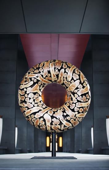 位于连廊尽头的艺术品酷似甜甜圈,视角独特