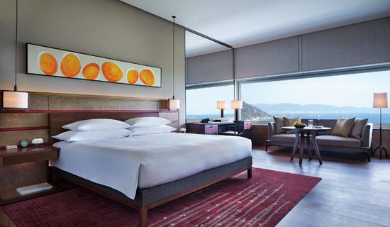 柏悦的 5 个泳池中包含一个 25 米长的室内泳池5 月的三亚清晨,在三亚太阳湾柏悦酒店里,我睡到了自然醒。起床,伸手,按下打开窗帘的按钮,阳光立刻肆无忌惮地铺满整个房间。与三亚的其他度假酒店不同,柏悦的大部分房间并没有阳台,取而代之的却是另一样更加让人喜欢的东西:一扇占据着房间一整面墙体宽度的玻璃窗。它的特别之处在于,虽然“霸占”了房间的宽度,却在高度上减了一半,因而被许多酒店员工笑称为“宽银幕”;窗帘也不普通,白天一卷竹帘,到了晚上则是把光线挡得严严实实的遮光布。