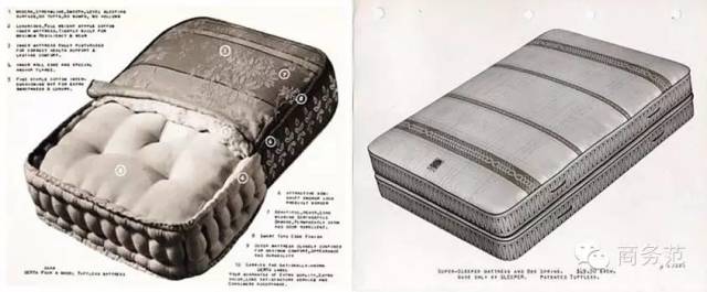 1889年,拥螺旋形弹簧的钢丝床垫问世,而席梦思改良了床垫的生产流程,大大减低生产成本,从此弹簧床事业拉开帷幕~