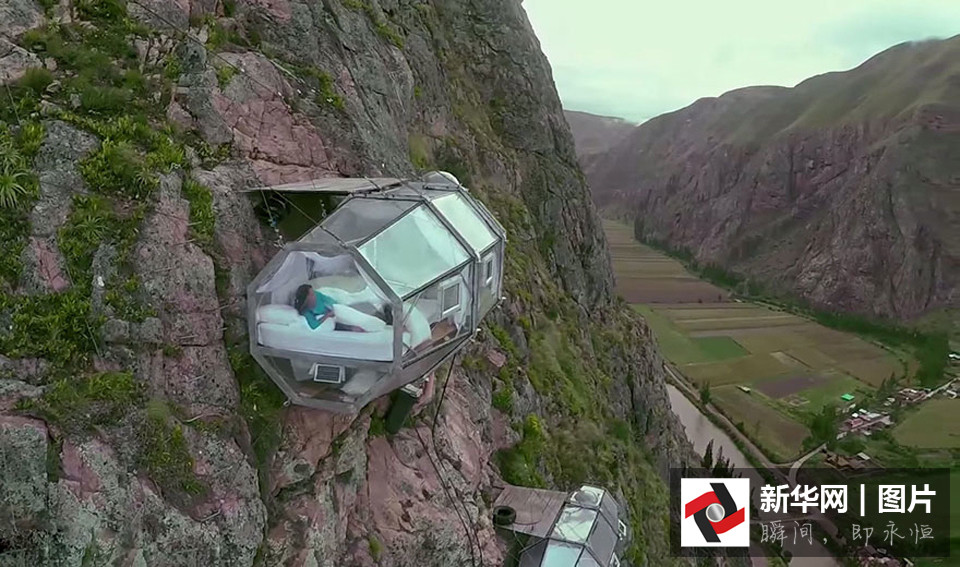 2015年7月22日消息(具体拍摄时间不详),睡在400英尺(122米)高的绝壁上会有怎样的感受?在秘鲁安第斯山脉上,秘鲁旅游公司Natura Viva运营着三个悬挂在悬崖峭壁上的胶囊旅馆。这三个24米乘以8米大小的胶囊旅馆是透明的,用聚碳酸酯和铝制作而成。从胶囊公寓中可以看到壮观的神圣峡谷,这里以其迷人的景色和小村庄,以及惊险的道路而出名。