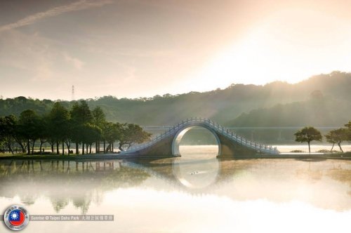 位于台北成功路五段大湖公园内的的月亮桥,是世界上最梦幻的小桥之一。在清晨弥漫的时候,这座半圆拱的石桥,在飘渺的雾气中,石桥在柔和的晨晖照耀下,呈现出淡蓝色的色调再配上远处伸展的山脉以及岸边两三绿树,仿佛就是文人笔下绝美的水墨画。那迷人的弧线,倒映在平静的湖面上,仙境也不过如此吧。