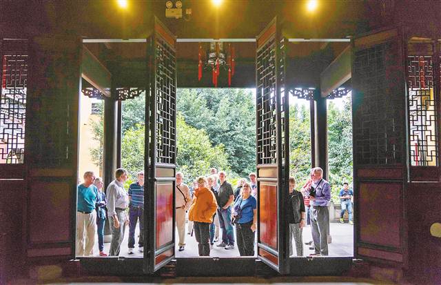 10月5日,渝中区湖广会馆,游客在古色古香的中式建筑群落中参观游览。 记者 崔力 摄