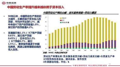 不过,中国在资本投入的过程中,资本投入技术含量也在提升,推动产业升级。如ICT投资(指信息设备、通讯设备、软件投资等)的比重明显上升。这说明尽管拉动经济增长的模式还是靠基建和房地产投资这一传统套路,但产业升级也确实在推进,这是随着收入水平的提高而出现的自然升级和转型过程。2011年之后,中国第三产业比重超过第二产业,这也是一个自然的过程。中国经济转型一定要靠产业政策引导吗?有政策的正确引导当然更好,但不靠政策也能转型,这本身就是生产要素之间的自由选择,有需求就怎样匹配。