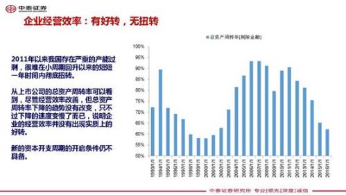 我不认可新周期,因为没有发现新的拉动经济增长的力量,或者新兴产业占经济总量的比重很小。如果考察所有非金融企业的总资产周转率,发现还是在持续下降。企业的经营效益有好转,但没有更多的扭转。如果再仔细研究一下刚刚公布完毕的2017年上市公司中报,可以发现上市公司的ROE水平并没有得到明显的提升,这也是我们所看到的中国经济面临的长期问题。