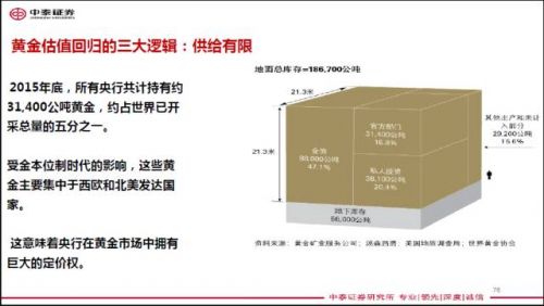 2000-2016年,黄金上涨了300%,跑赢了美国房价,但跑输了中国房价。不过,这并不代表未来也将跑输中国房价。此外,黄金量很有限,它不像石油那样埋在地下深层可以抽上来,据2014年世界黄金协会公布数据,地下总共存有黄金37.2亿盎司(11.57万吨)。在开采技术达到最高水平、金价足以覆盖高成本开采的情况下,估计只有18.2亿盎司(56608吨)黄金最终可被开采出并且进入供应流中。也就是说,按2015年黄金的开采量,最多只能开采17年就开采完毕。目前发现的新矿实际上是很难开采的,因为成本太高。