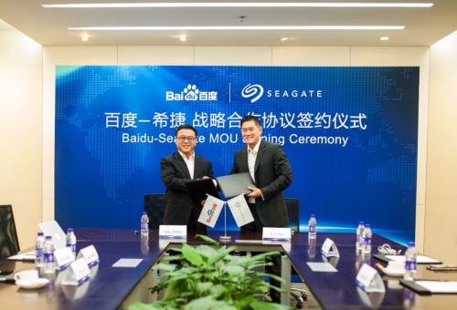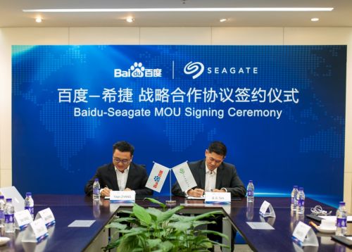 2017年9月18日,存储解决方案提供商希捷科技公司( NASDAQ: STX)今天在北京与中文搜索引擎和领先的人工智能科技公司百度公司(NASDAQ:BIDU)再次签署战略合作备忘录,进一步强化双方在信息技术、大数据分析和数据存储业务方面的合作。