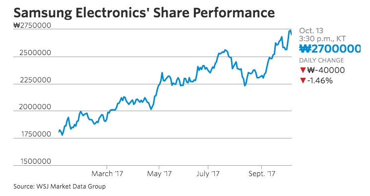 三星股价今累计上涨50%