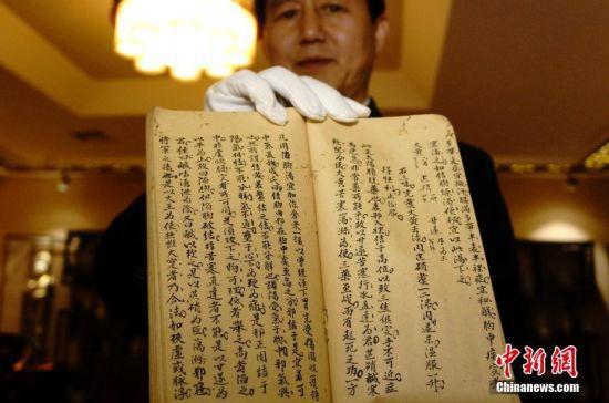 3月3日,中新社记者在吴润林的公司见到了他所收藏的古方中医药秘笈。这些书本被码放在几个木箱中,大多都还保存完好,水墨也都清晰可辨,几乎都是手工抄写,字迹隽秀、工整,字里行间仿佛都透露出岁月的印记。也有一些书本出现残缺坏损,被虫蛀得千疮百孔,亟待保护和修复。吴润林告诉记者,当初为了收集这些古方,他花了不少工夫和精力。