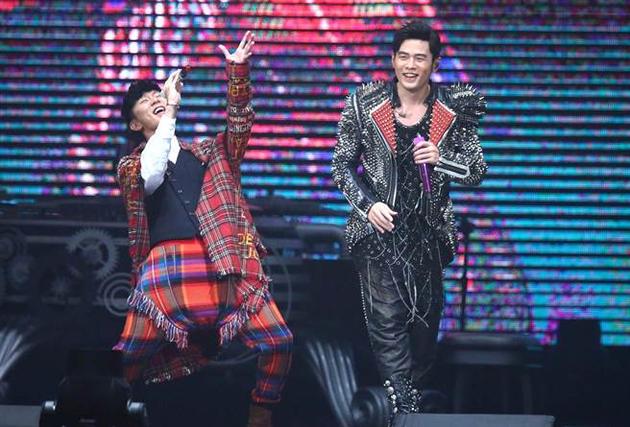 周董接着出场,从背后勾着林俊杰展现两人好友谊,并夸赞:“你是我心目中唱最好的男歌手。”更给他“行走CD”的称号,JJ反问:“昨天那位呢?”周董装作不知情询问,“昨天有人来吗?”
