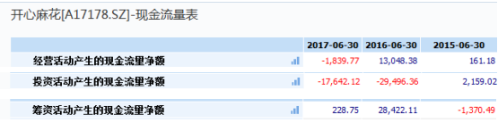 从开心麻花的现金流量表数据可以看出,今年上半年公司经营活动现金流净额和投资活动现金流净额均为负数,而筹资活动现金流净额较上年也大幅收窄,这说明开心麻花目前处在公司初创期到上升期这个阶段,需要的投资也越来越多。就近几年而言,开心麻花不管是自制电影还是在《欢乐喜剧人》等综艺节目上亮相,都是增加曝光度拓展市场的行为,随着市场的不断扩大,公司举债、融资大幅增加也算正常。