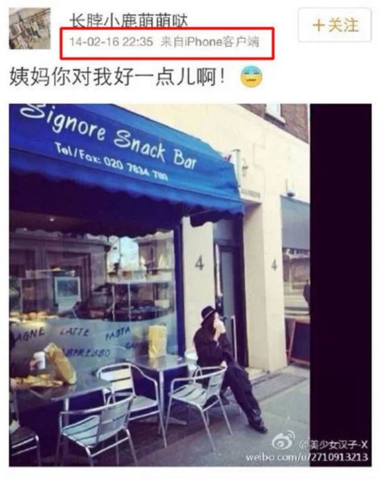 单凭两张照片当然证明不了什么,但是如果注意一下照片发布的时间,事情就变得很有意思了,同样场景的照片,“长脖小鹿萌萌哒”发布的时间比张子萱还要早呢