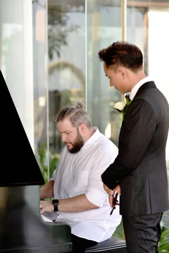 除父母及家人外,欢子只邀请了英国与澳大利亚的知名唱片制作人Andrew与监制Jack参加婚礼,更与其在婚礼上合作一曲,默契十足。据悉,Andrew和Jack还将参与欢子新专辑的制作,如此强强联手,中西合璧,欢子婚后的首张专辑值得期待。