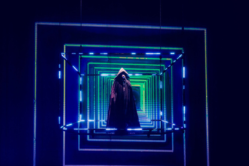 演唱会第三幕以广州都市元素开启,许嵩再度弹起书籍造型钢琴,《灰色头像》回忆杀来袭,现场尖叫声与歌声组成交响。欢快版《想象之中》清新亮眼,温情版《平行宇宙》震撼催泪,许嵩的摄影作品也与曲目《摄影艺术》同步上演。值得一提的是,许嵩送给广州站的“宇宙主题”是代表着Vae的大写字母“V”,引台下粉丝尖叫。