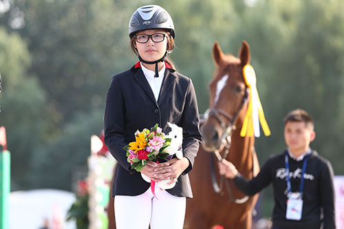 2017浪琴表国际马联(FEI)场地障碍世界杯-中国联赛总决赛在10月5号于朝阳公园正式打响,在下午进行的60-90cm青少年及马主赛第一轮比赛中,来自京城马汇国际马术俱乐部的14岁小骑手丁天沛与她的比利时温血马Clic Clac 在比赛中配合得天衣无缝,以零罚分、行进时间64.84秒的成绩摘得季军。这是她第三年参加比赛,却是第一次接受媒体的采访。
