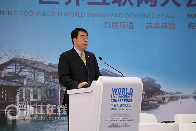 国家网信办副主任任贤良发言。浙江在线记者王坚颖摄