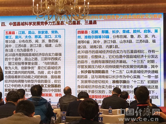 2016中国县域科学发展竞争力发布,图为部分数据。中国经济网记者宋雅静/摄