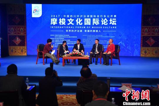 泸沽湖被称为“东方女儿国”,生活栖息在泸沽湖畔的摩梭人,被认为是中国唯一仍存在的母系氏族。为探讨传统摩梭文化丰富的内涵及其传承与保护,2017·中国四川环泸沽湖国际自行车公开赛暨摩梭文化国际论坛开展了包括“摩梭文化产业发展”主旨演讲、“摩梭文化国际传播”主旨演讲以及对话等环节。来自海内外的20余位专家学者齐聚一堂,从不同的专业领域各抒己见。