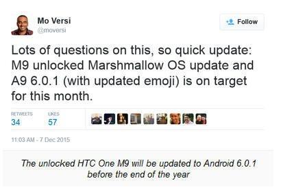 腾讯数码讯(编译:盖利会)近日,HTC产品管理副总裁Mo Versi在微博上表示,将为HTC One M9智能手机提供棉花糖版本操作系统的更新升级。该公司表示旗舰智能手机解锁版HTC One M9将在本月升级Android 6.0.1棉花糖版操作系统,新版的系统将为用户带来新的表情。