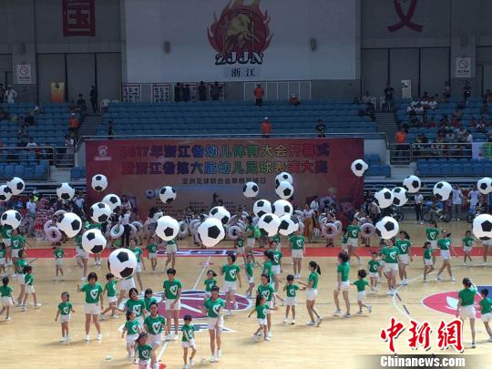 据悉,浙江省有组织、有规模、有管理的幼儿体育活动始于1992年由原浙江省体委、体育总会、省关工委共同发文主办的首届省幼儿基本体操表演大赛。自2008年成立了浙江省幼儿体育大会后,至今,主办单位从原来的两家发展成体育、关工、卫计、教育、工、青、妇、军区、广电等十几个省有关单位和部门,有近十万小朋友参加了省幼儿体育大会的各类各项表演活动,进一步有力、快速地推动了浙江幼儿体育健康教育事业的发展。