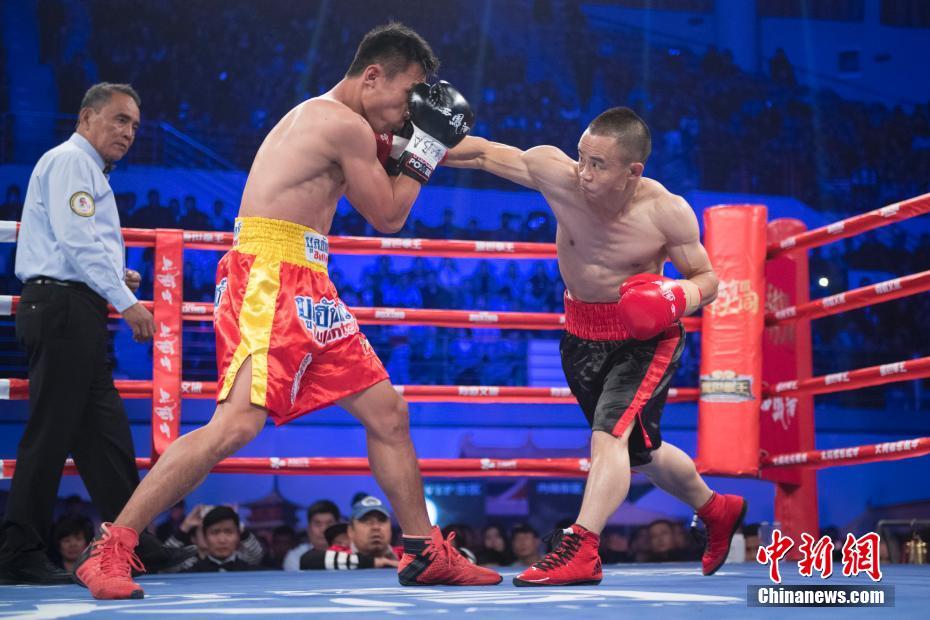 10月3日晚,山西大同,35岁的“矿工拳王”熊朝忠在沉寂一年后复出,击败了有不败拳王之称的泰国拳手潘亚·普拉达斯里,拿到WBA草量级临时金腰带。中新社记者 韦亮 摄