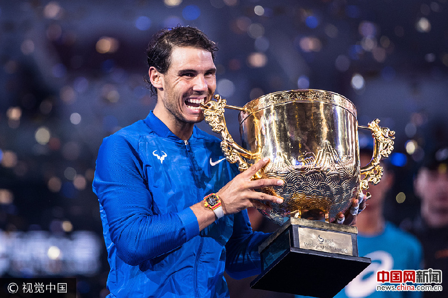 2017年10月8日,北京,2017中国网球公开赛男单决赛,纳达尔2-0尼克·克耶高斯,取得了本届中网男单的冠军,继2005年中网夺冠之后时隔十二年再度捧起桂冠。
