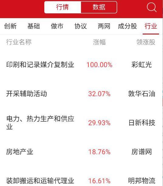 板块方面,印刷和记录媒介复制业、开采辅助活动、电力、热力生产和供应业等板块涨幅居前;纺织服装、服饰业,石油加工、炼焦和核燃料加工业、废弃资源综合利用业等板块跌幅居前。