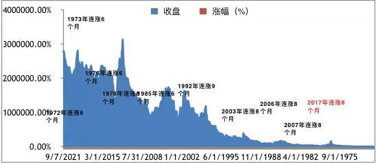 笔者在8月底至今接受了超过10次采访,记者问的最多的问题是:“港股已经连续涨了8个月,还能涨多久”。回顾香港股市超过50年的历史,每月连涨超过半年的行情一共出现过10次,如果按照这个口径来统计,今年港股原来已经是历年来第二长月线连续升浪。
