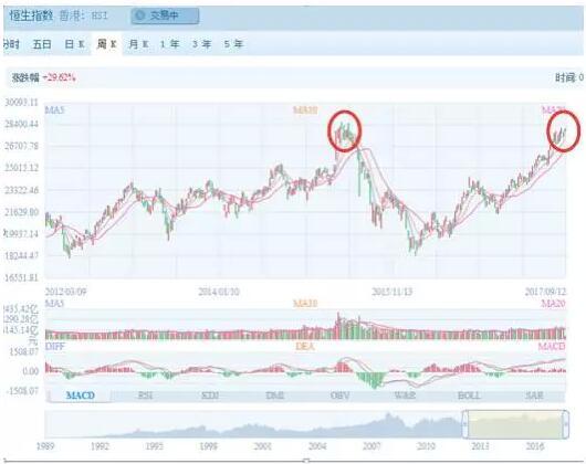 如果看短线趋势,技术面可能比基本面更加敏感。从形态角度进行分析,港股28000点至28500是2015年的高点,同时也是此轮上行通道的上轨。