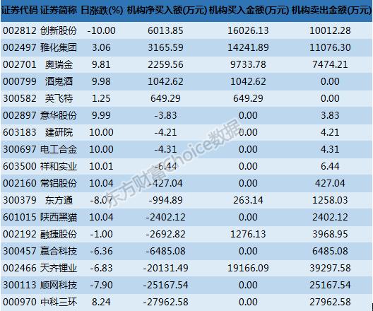 9月12日,机构参与龙虎榜中个股共涉及17只个股,其中5只个股机构作为净买入方,买入金额最多的为创新股份,金额为6013.85万元。另外的12只个股机构作为净卖出方,卖出金额最多的为中科三环,金额为27962.58万元。