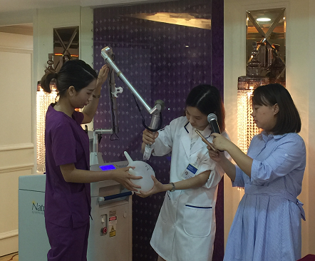 (傅晓焜主任展示激光美容的神奇)