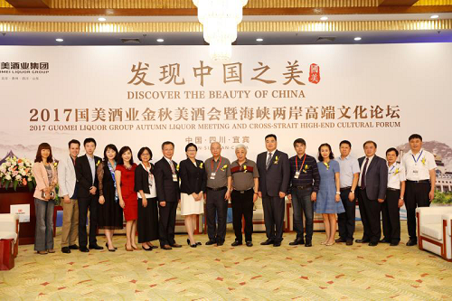2017年9月25日,“发现中国之美——2017国美酒业金秋美酒会暨海峡两岸高端文化论坛”在宜宾国美酒业股份有限公司成功举办。论坛以“弘扬中华白酒文化精髓,促进两岸文化交流”为主题,来自海峡两岸著名的酒业大咖、品牌专家、著名媒体人参加论坛。通过此次论坛的高峰对话,加强了两岸业界人士的交流合作,促进两岸白酒产业的相互了解,熏陶了两岸深深的民族感情,携手推动中华民族酒文化走向世界。