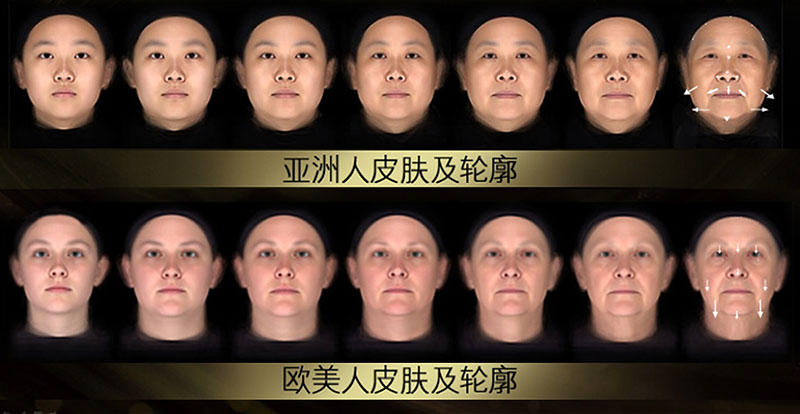 OLAY一项长达70年跨5大种族跨年龄大数据研究发现,唯有亚洲女性随着年龄增长,在面对松弛、皱纹等常见肌肤衰老问题外,面部轮廓还呈现出横向外扩趋势,“越老脸越大”,肌肤衰老具体表现为:下颌两侧轮廓松弛;法令纹出现及变深;苹果肌下垂;肌肤失去光泽;黄气加深。