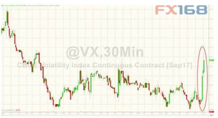 (VIX指数30分钟走势图,来源:Zerohedge、FX168财经网)