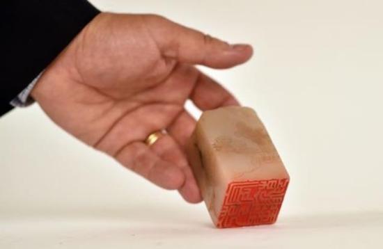 据报道,这枚米色滑石印章高9.2公分,高处形同山峰。起价10万欧元,估价50万到60万欧元。6位竞买人参加竞拍,3位在拍卖大厅里,其中1位最终获胜。