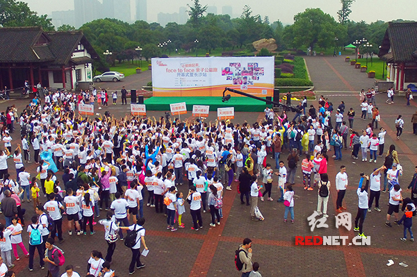 29日上午,湖南首个大型亲子公益跑——face to face亲子公益跑在长沙橘子洲拉开帷幕。