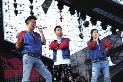 进入彩排休息间后,黄渤向庾澄庆讨教唱歌表演经验,两人还给他们的组合取名“黄庾三吃”。“黄庾”代表“黄鱼”,三种吃法表示黄渤和庾澄庆的组合变化多样,在表演上可以有不同的创意和新的火花,“三吃”也意为把其他三个上台表演的兄弟“吃”掉,突出他俩的光彩。虽说在后台毫无忌惮地说说笑笑,但到了台上,能和偶像同台表演的机会实属不易,黄渤也是格外珍惜。
