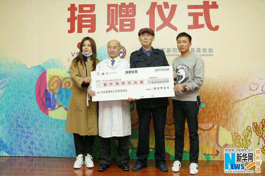 3月28日下午,爱心人士张善华先生携手V爱基金捐赠仪式在河北燕达陆道培医院启动,V爱基金发起人,著名演员、导演赵薇[微博]和北京麦特文化发展有限公司董事长兼CEO陈砺志[微博]出席捐赠仪式,代表V爱接受了张先生为V爱基金捐赠的1600万元善款。