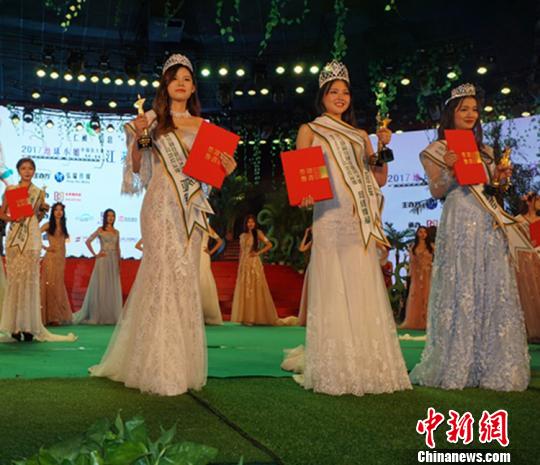 地球小姐冠亚季军合影 魏佳文 摄