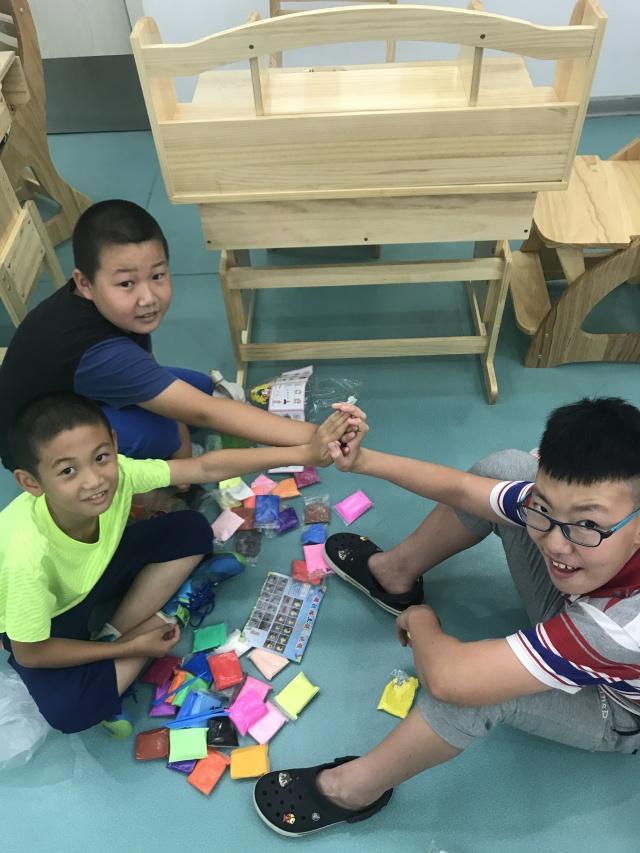 前一天孩子和家长们就自发组织怎么拼车,怎么过去,孩子们也都很兴奋,让他们提前准备了泥塑原料,跟福利院的小朋友们互动一起捏泥做手工。