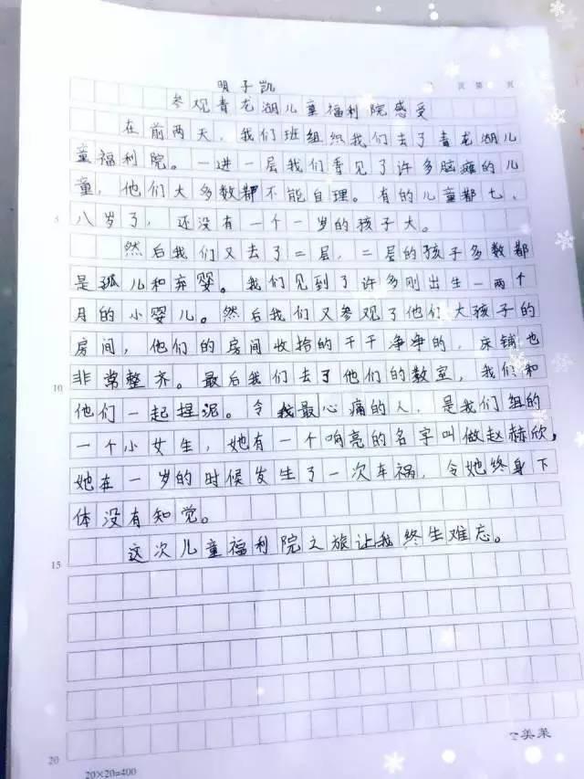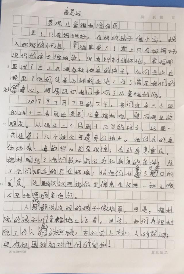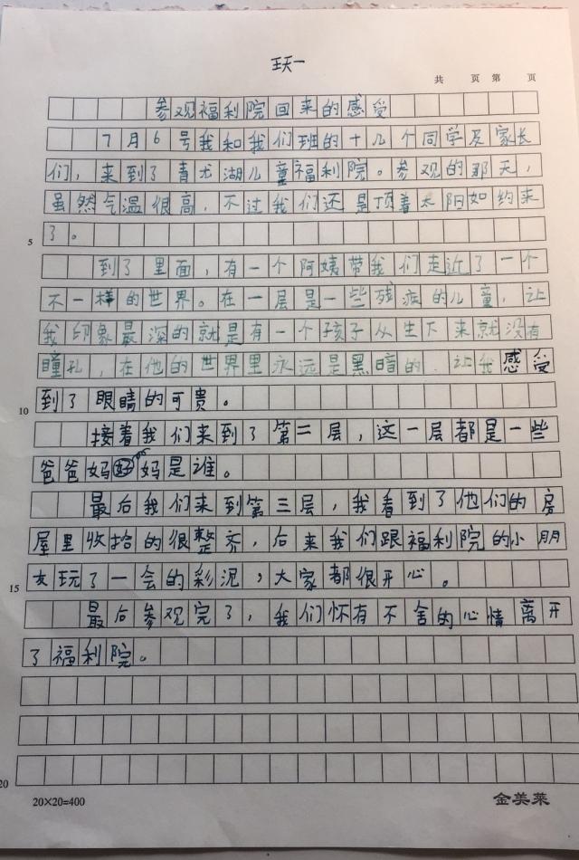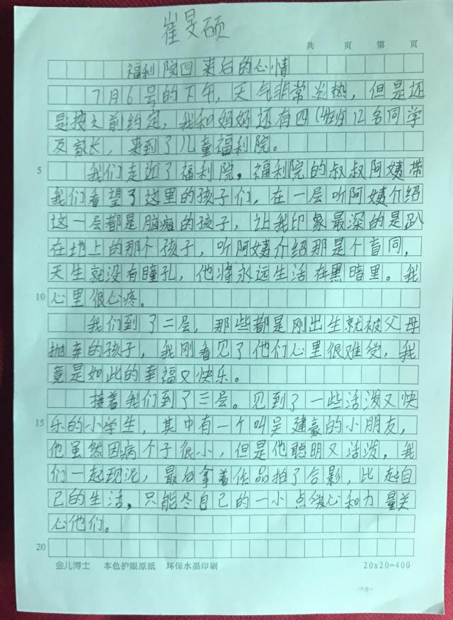 在回来的第三天,群里陆续收到孩子们上传的作文,这些都是他们用心感受之后写的真心话,这次的公益行,应该在他们的内心留下了一次深刻的成长烙印。
