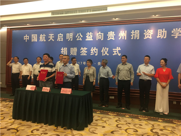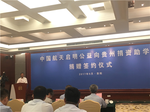 2017年9月6日上午,中国航天启明公益向贵州捐资助学捐赠签约仪式在贵阳·贵州饭店国际会议中心举行。会议由贵州省政府副秘书长周明勤主持。