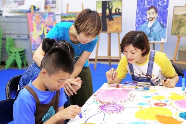 常思思非常重视这次志愿者任务,很早就到达现场,向老师请教疗愈课的内容,并请老师将她也当做自闭症儿童,让她和孩子们一起学习,更好的去感受他们的世界。有些早来的小朋友被这个身穿可爱款t恤和牛仔背带裤的大姐姐给吸引住了,纷纷向她展示自己的“拿手绝活”,有的孩子虽然反应迟缓,但音乐天赋异禀,乐器演奏十分专业。常思思热情且耐心地听他们说的每一句话,并为他们带来许多富有心意的小礼物,孩子们爱不释手。课堂上,常思思与小朋友们一起进行了绘画疗愈体验,还演唱了专门创作的歌曲《心有星光》,孩子们情不自禁的跟她一起合唱。疗愈中心的老师十分认可思思的表现,认为她“极富亲和力,能调动孩子们的注意力和积极性”,而常思思也坦言自己平时很喜欢做公益的事,尤其在当上妈妈以后,更能体会到这些自闭症儿童家长的不易,她表示会将这样有意义的事情一直做下去。