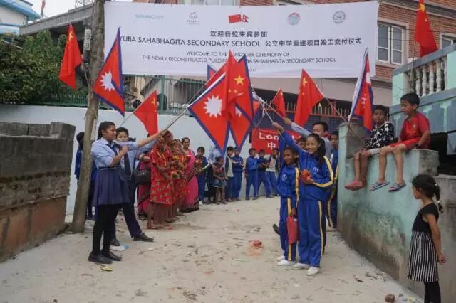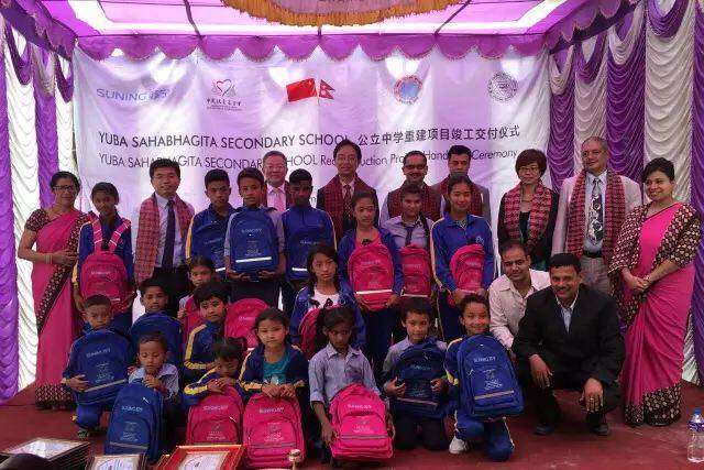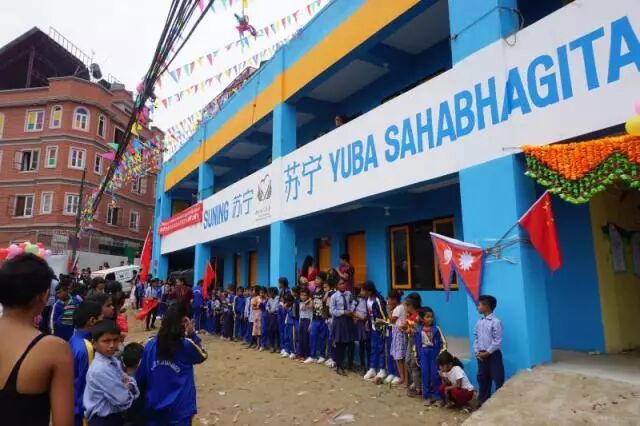 本网讯:2017年9月19日,尼泊尔时间上午10时,由苏宁捐赠、中国扶贫基金会援建的Yuba Sahabhagita学校竣工交接仪式在尼泊尔加德满都举行,这是4·25尼泊尔地震后由中国人民援建的第一所永久性学校。