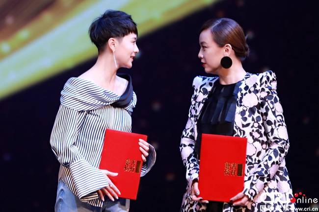 海清瘦身亮相获慈善榜样奖 衣服下滑忙提拉手捂胸口
