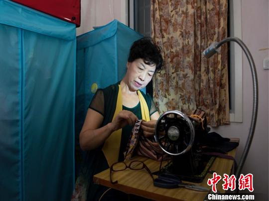 宋玲华缝制“环保袋”。