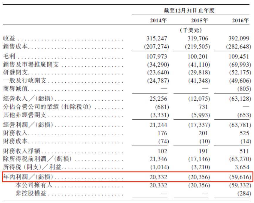 雷蛇在2014年盈利2033万美元,但到了2015年则产生亏损2036万美元,2016年的亏损进一步扩大至5962万美元。侵蚀利润的主要是销售及市场推广开支和研发开支。